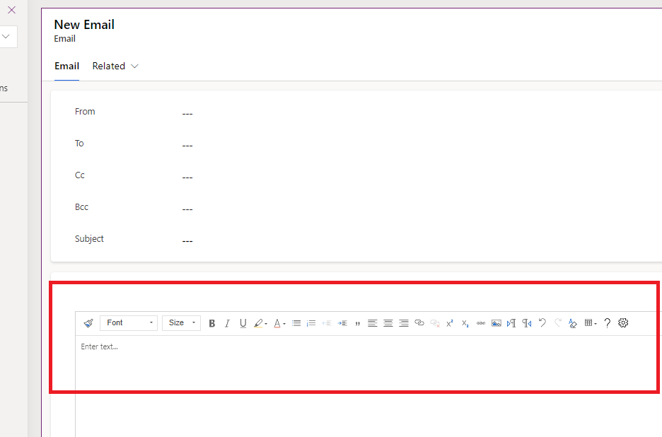 Apply this same change for all the forms for the Email table that you want to have the same default behaviour, and click the Save and publish -button.