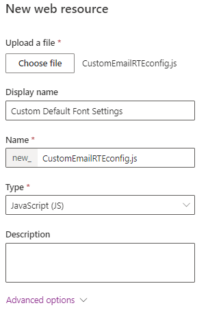Find the URL of the Web Resource similarly as was done with the default Custom Configuration URL. In my example, the URL was https://not-a-real-orgname.crm4.dynamics.com/WebResources/new_CustomEmailRTEconfig.js