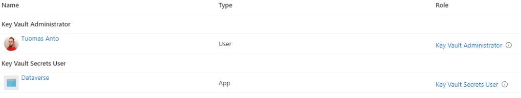 Key Vault Secrets User role assignment will be added for the Dataverse service principal. This is required in order to later create and configure the Environment Variable correctly! Otherwise you will get permission errors when trying to create the Environment Variable, and you will be confused as of why 🙂