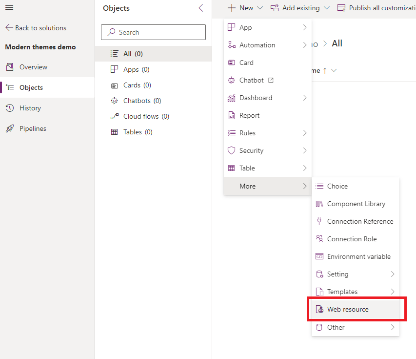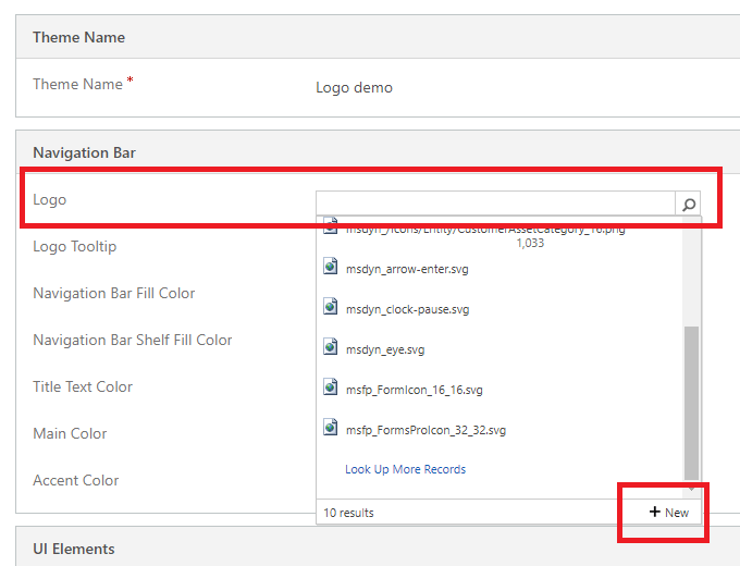 After creating the web resource, just select the newly created logo in the lookup. Then save and select Publish Theme from the navigation bar.