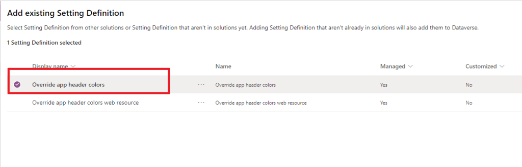 Search for “Override app header colors”, you will probably get two results. Add the one with exact name “Override app header colors”.