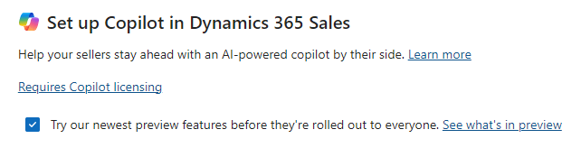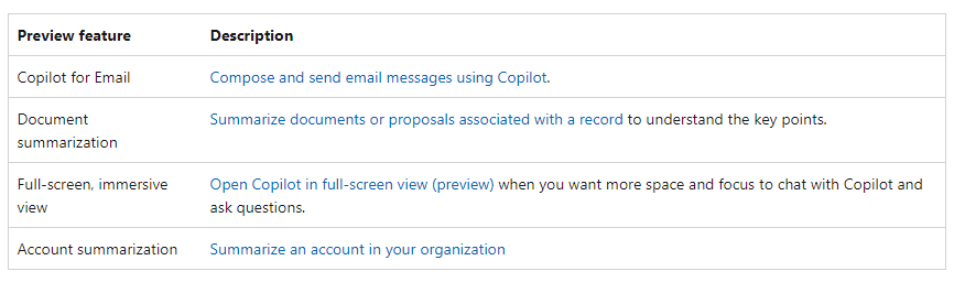 At the time of writing this, there are four preview features available for Copilot in Dynamics 365 Sales