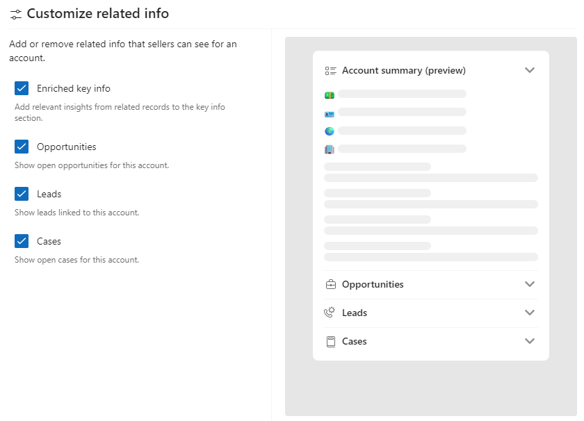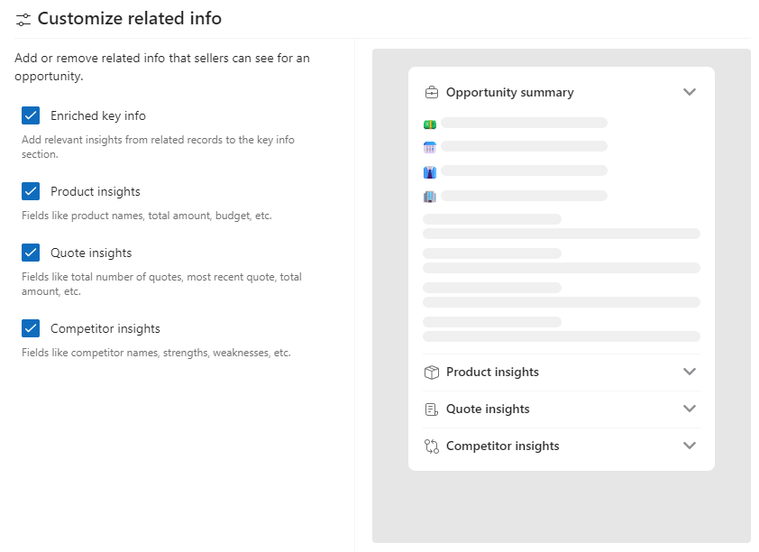 You can also configure what you want to show in the Opportunity Summary. Click on the “Customize related info” to access the configuration