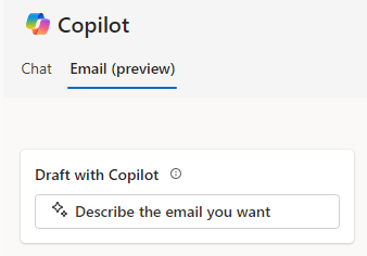 To access this capability, you need to have an email draft open. After you opened an email, the tab becomes accessible and Copilot promps you to desribe the email you want.